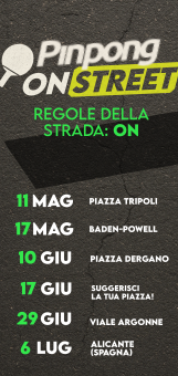 Siamo presenti come sponsor e partner a diversi tornei a Milano nei mesi di maggio e giugno. Inoltre, organizziamo eventi nelle piazzette chiamati "Pinpong ON Street" sui tavoli pubblici seguendo le regole della strada. Questi mini-tornei sono un'ottima occasione per incontrare altri appassionati, provare l'app e divertirsi insieme. Seguici sui nostri canali social per rimanere aggiornato sul calendario ufficiale degli eventi!